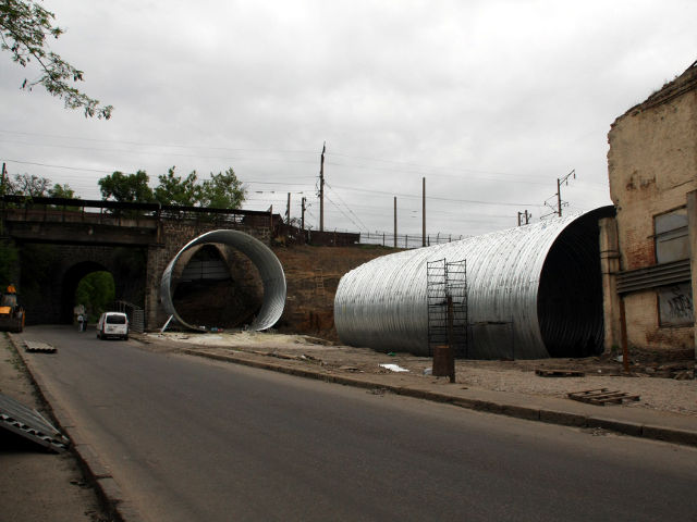 На сьогодні головна точка докладання зусиль будівельників у Кропивницькому знаходиться біля арки, де ведуться останні підготовчі роботи перед початком монтажу величезної труби. Обидві частини труби діаметром більше п’яти метрів вже змонтовані й чекають моменту, коли на два тижні припиниться рух залізничною гілкою над аркою.
