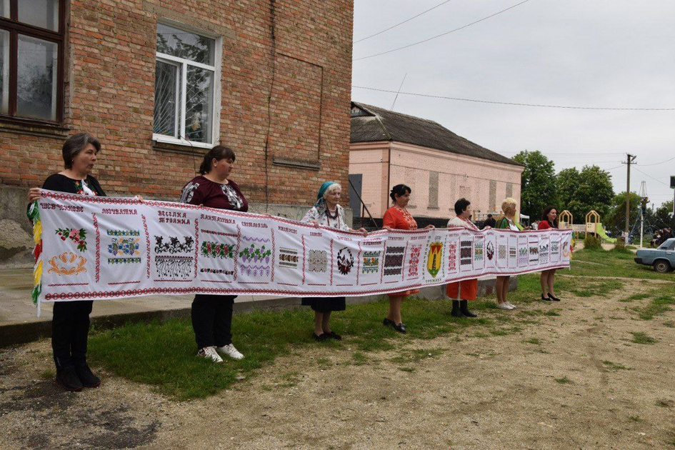У Новопразькій громаді презентували 10-метровий вишитий «Рушник єднання» та зібрали понад 70 тисяч гривень для війська.