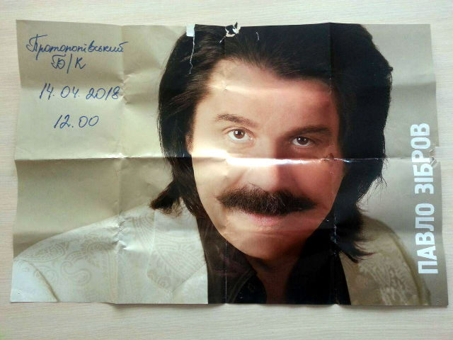 Тим часом у населених пунктах, де виступатиме співак, розвішують афіші. Одну з них почепили на салоні «Ритуальні послуги».