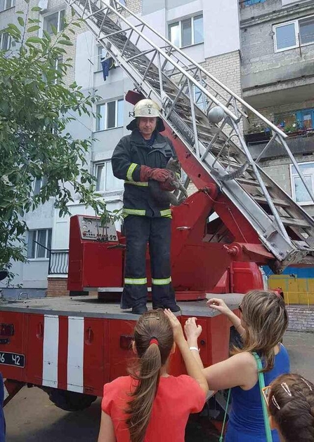 О 09:50 до Служби порятунку «101» надійшло повідомлення про те, що на козирку віконної рами однієї з квартир на п’ятому поверсі 9-поверхівки на вул. Попова в обласному центрі сидить кіт, який не може вибратись із халепи самостійно.