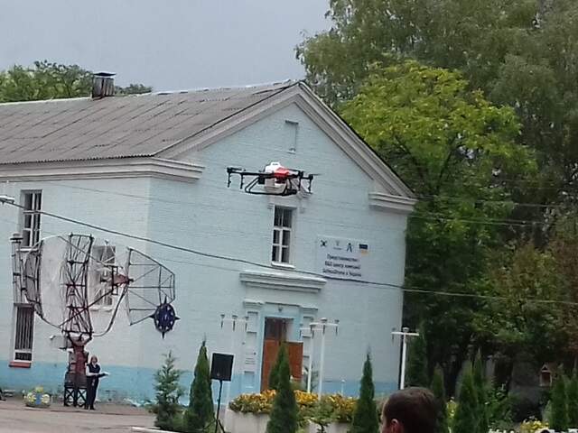 Після урочистого відкриття офісу курсанти академії продемонстрували, як дрони можуть обприскувати поля, перевіряти цілісність ліній електропередач та допомагати рятувати людей на пожежах.