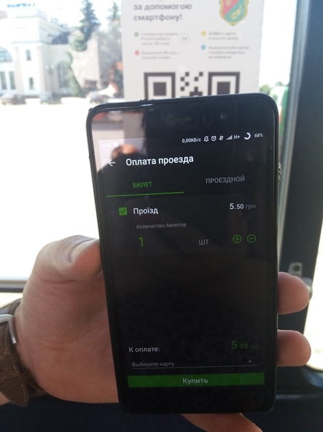 Для оплати проїзду QR-кодом потрібно завантажити на смартфон мобільний додаток Privat24 та відсканувати зображення на стикерах, розміщених у салоні транспорту. Під час поїздки оплачений квиток потрібно «закомпостирувати» в смартфоні та показати кондуктору.