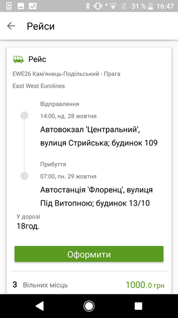 Новий сервіс миттєвої покупки автобусних квитків доступний цілодобово на більш як 20 тис напрямків Україною та за кордон - Італію, Францію, Польщу, Латвію, Чехію та інші країни.
