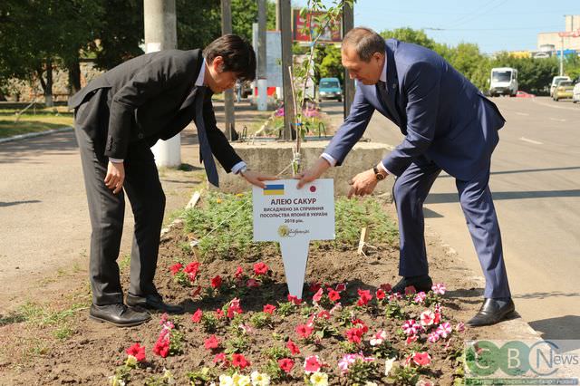 Нагадаємо, 10 травня працівники КП «Благоустрій» на вулиці Соборній висадили саджанці сакури. У червні другий секретар посольства Японії в Україні Ясухіро Ікута завітав до Кропивницького, разом з мером міста Андрієм Райковичем встановив спеціальний знак і полив молоденькі деревця. Цвістиме сакура вже наступної весни.