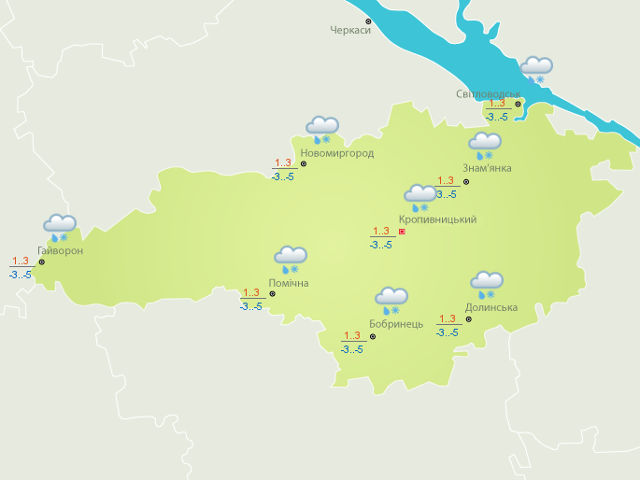 Сьогодні, 19 листопада, на території Кіровоградської області очікується мокрий сніг.