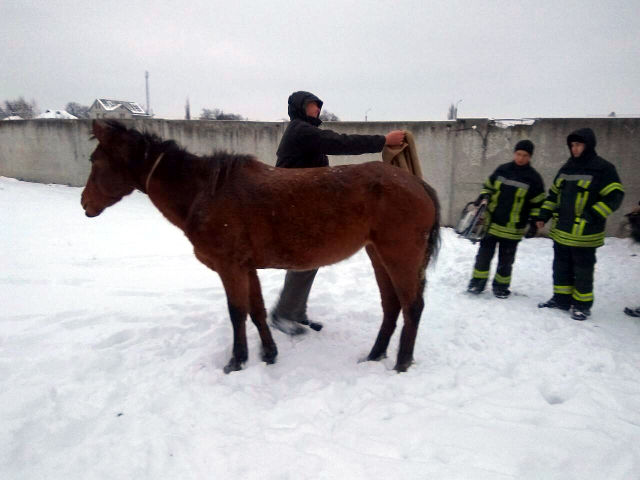О 6:51 17 грудня до Служби порятунку «101» надійшло повідомлення про те, що біля стадіону на вулиці Барболіна в обласному центрі між елементами огородження застряг кінь та не може вибратись.