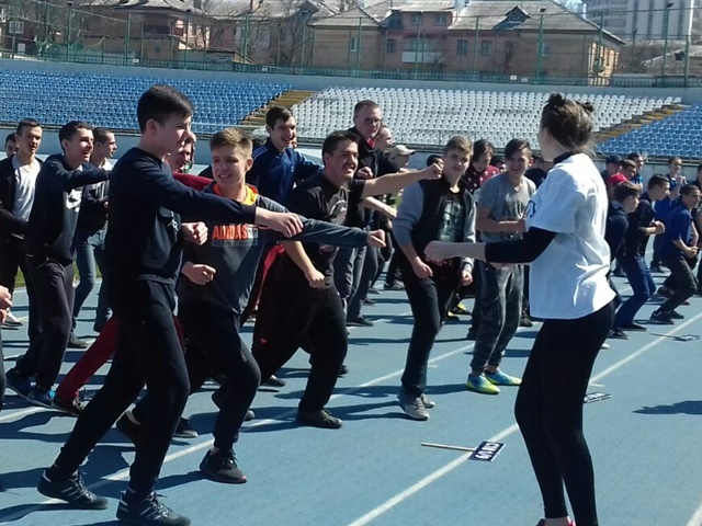 Після цього студенти, викладачі та директор навчального закладу зробили розминку, а потім пробігли дистанцію довжиною 800 метрів.