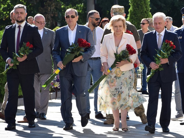 Квiти до пiднiжжя пам’ятника поклало керiвництво облдержадмiнiстрацiї, обласної ради, мiської ради.