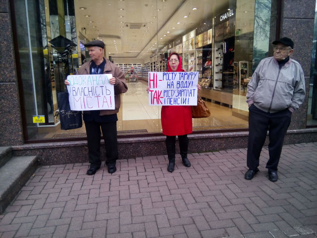 Люди тримають плакати з гаслами проти нових тарифів на воду тощо.
