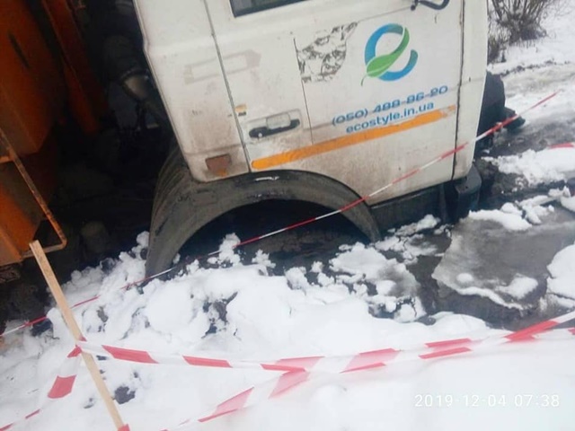 У Кропивницькому колесо сміттєвоза провалилося під землю. Тепер не можна вивезти сміття з двох провулків (ФОТО)