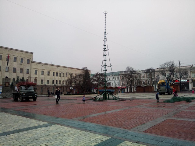 У Кропивницькому почали монтувати новорічну ялинку (ФОТО)