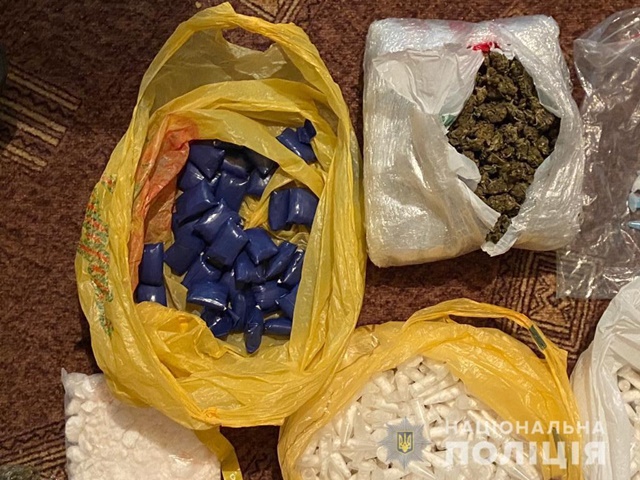 Під час обшуку орендованої квартири у молодого чоловіка знайшли пакети з таблетками, білим та синім порошком, марихуаною, а також вже упаковані для «закладок» зіп-пакети з наркотиками.