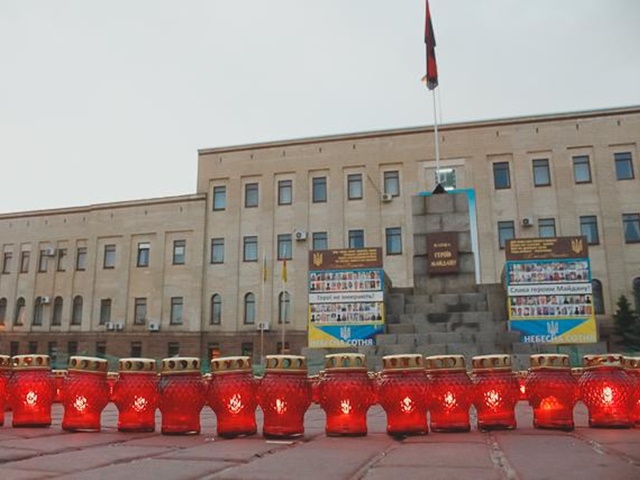 На площі запалили лампадки та виклали їх у формі маку.