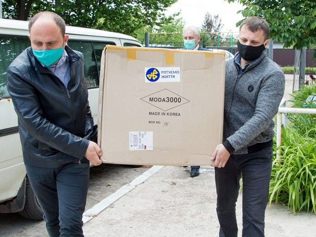 Кожна лікарня отримала по 50 захисних костюмів та по п’ять пульсоксиметрів. Всі костюми південнокорейського виробництва.