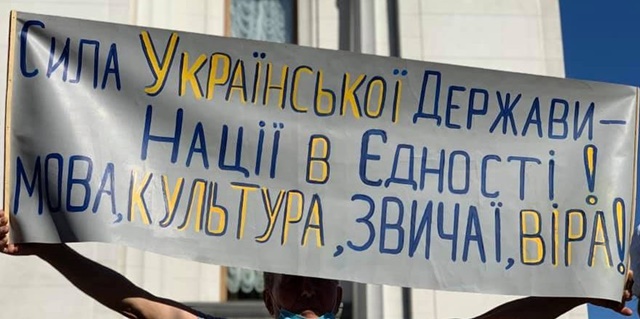 Понад сто жителів Кіровоградщини за сприяння обласної організації партії «Європейська солідарність» взяли участь в акції протесту, яка проходила в Києві, проти законопроєкту «слуги народу» Максима Бужанського, який відстрочить ще на три роки перехід на українську мову навчання учнів 5-11 класів російськомовних шкіл, передає кореспондент CBN.