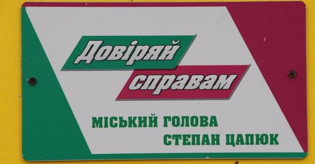 Тим часом, о 17:20, блогер Олександр Кіяшко виклав відео. На ньому співробітники Державної служби з надзвичайних ситуацій відновлюють свій білборд, де також несподівано з’явилося «Довіряй справам. Міський голова Степан Цапюк».
