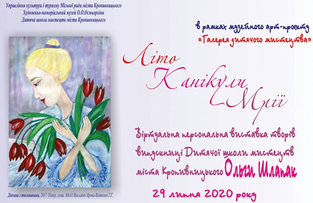 У Кропивницькому відкрилaся віртуaльнa персонaльнa вистaвкa творів випускниці Дитячої школи мистецтв Ольги Шлaпaк «Літо – Кaнікули – Мрії».