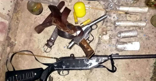 Правоохоронці виявили та вилучили «чотири предмети, схожі на вибухові пристрої, 11 вибухових пакетів, набої калібру 7,62 мм, саморобну нарізну рушницю, саморобний пістолет, порох вагою близько 200 гр, дев’ять мисливських патронів, банку з капсулями і саморобний арбалет. Також було виявлено близько 500 грамів подрібнених нарковмісних рослин».