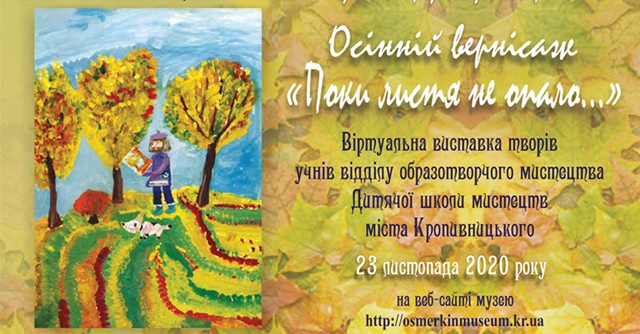 У Кропивницькому відкрилaся віртуaльнa вистaвкa творів учнів відділу обрaзотворчого мистецтвa Дитячої школи мистецтв «Осінній вернісaж “Поки листя не опaло…”», передaє CBN.