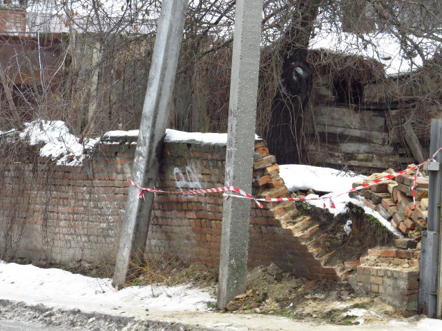 На вулиці Пушкіна трохи нижче будівлі колцентру «Кіровоградобленерго» будь-якої хвилини може обвалитися цегляна огорожа.