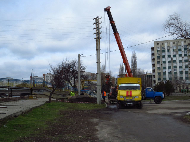 У другий день весни комунальники взялися за теплотрасу на Набережній біля залізного місточка через Інгул.