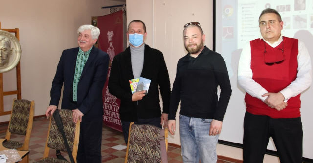 Три Романи – поет Роман Любарський, актор Роман Бутовський та сатирик Роман Яковенко - у бібліотеці імені Дмитра Чижевського читали витончені пародії, дотепні скоромовки, каламбури та розповідали театральні байки.