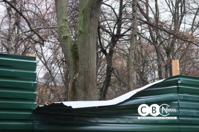 Одне з дерев впало і зруйнувало паркан, яким обгородили територію скверу.