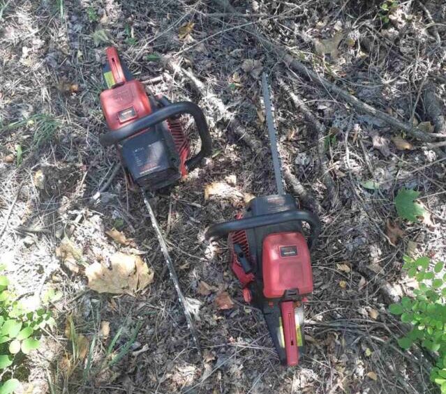 Під час огляду інспекція виявила пні дерев різного діаметру, дві ланцюгові бензинові пилки, автомобіль ВАЗ та громадян, які незаконно спилювали дерева.