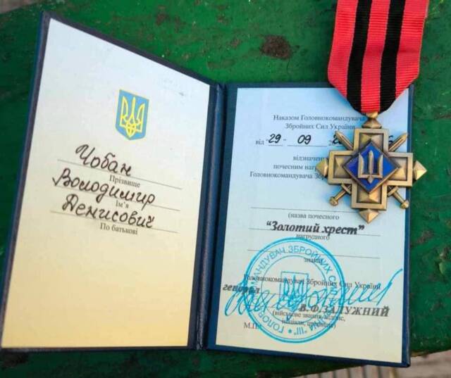 Володимир Чобан, воїн із села Шевченкове, отримав почесну відзнаку «Золотий хрест».