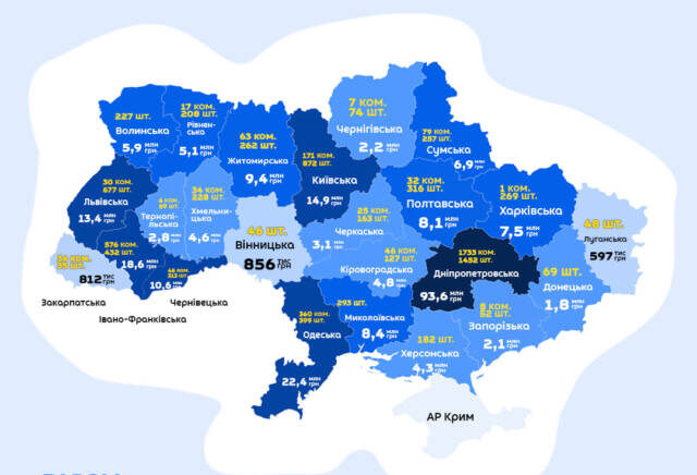 Найменше на засоби радіозвʼязку витратили Вінницька, Закарпатська Луганська області.