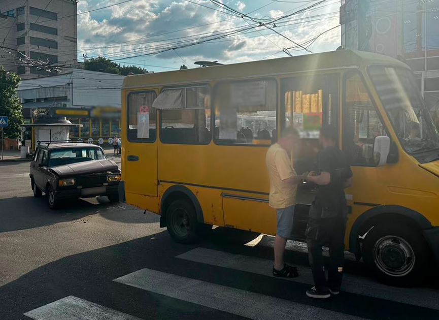 Учора, 5 червня, у середмісті Кропивницького автомобіль ВАЗ 21043 зіткнувся з машрутним таксі БАЗ 22154.