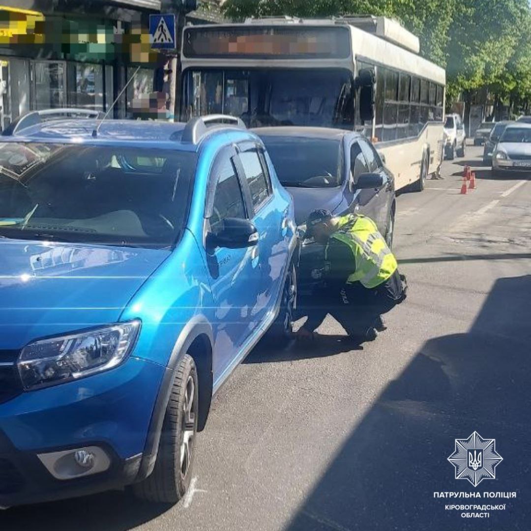 2 травня в Кропивницькому сталася ДТП за участі тролейбуса та двох легковиків.