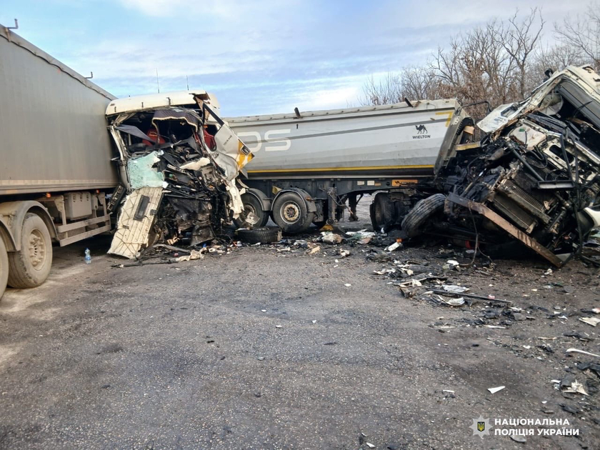 За попередніми даними поліції, водій вантажівки IVECO, 1963 року народження, рухаючись у напрямку Знам’янки, виїхав на смугу зустрічного руху, де зіткнувся з вантажним автомобілем MAN, яким керував водій 1981 року народження.