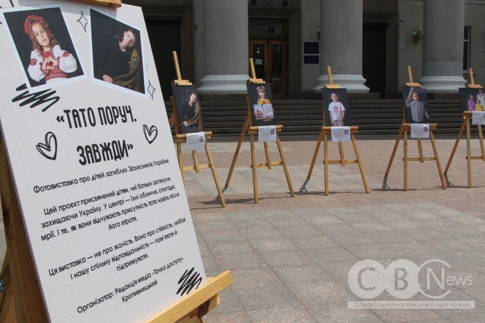 У Кропивницькому представили фотовиставку «Тато поруч. Завжди», де презентували світлини дітей, чиї батьки загинули на війні.