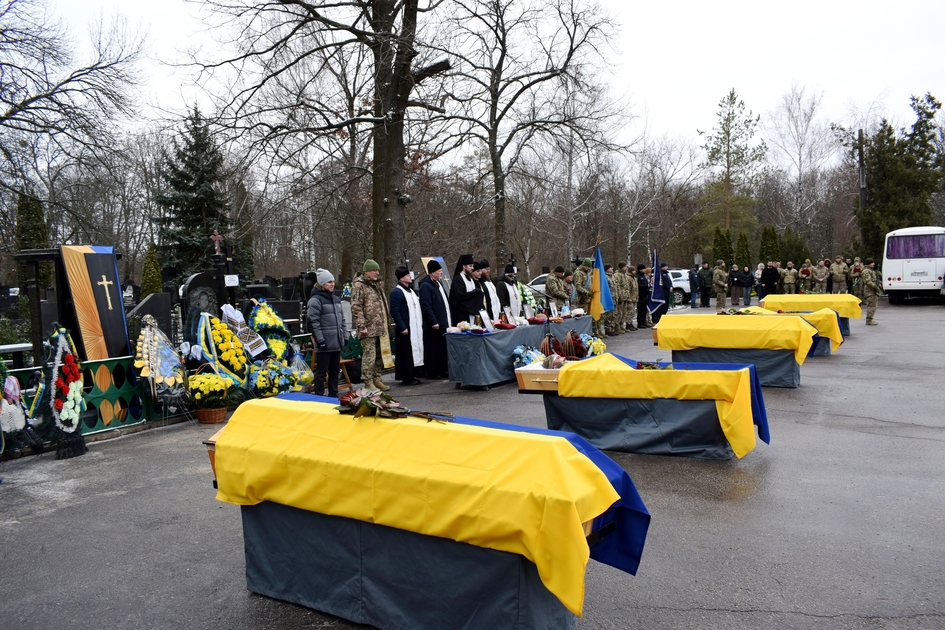 4 лютого у Кропивницькому в останню путь провели військових Романа Малика, Максима Очеретька, Сергія Резніченка, Дениса Хлистуна та Артема Сіваченка.