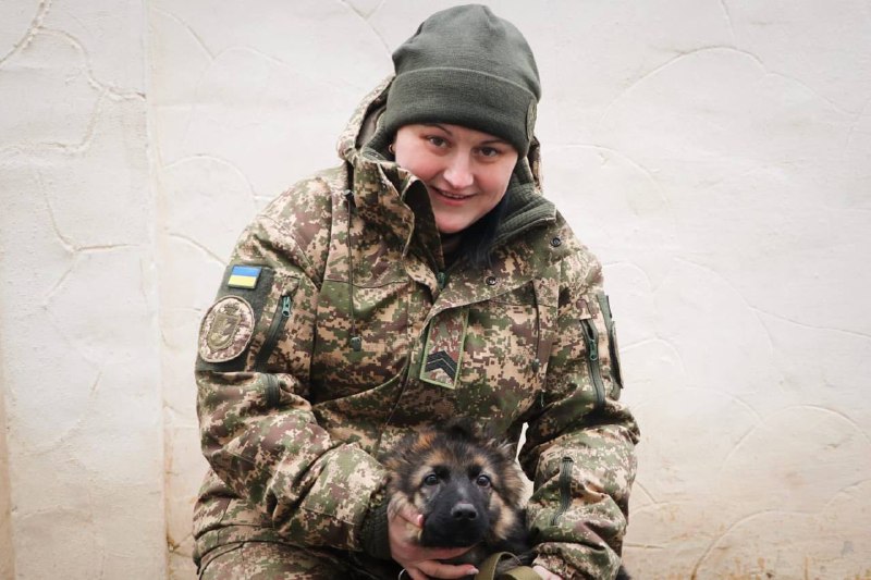Нацгвардійка Анастасія з Кропивницького дресирує чотиримісячне цуценя німецької вівчарки Зевса на пошук небезпечних предметів, пухнастика назвала на честь верховного бога з давньогрецької міфології.