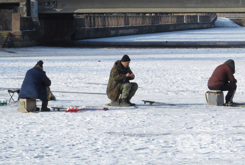 Кропивничани виходять на лід Інгулу порибалити (фоторепортаж)