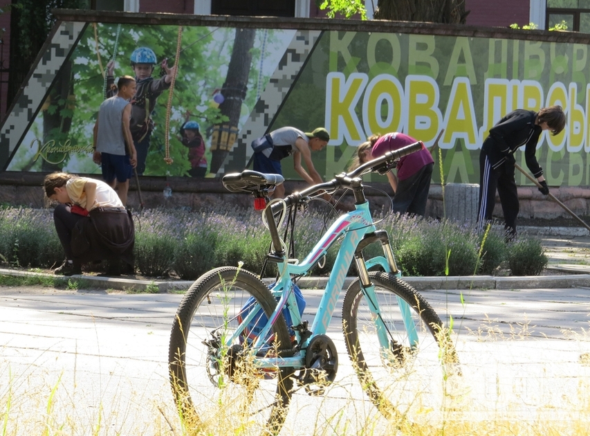 Діти працюють з 8:00 до 12:00 з 15-хвилинними перервами. Роботи проводяться у місцях, де найчастіше відпочивають люди. Наприклад сьогодні, 20 червня, - у Ковалівському парку. Молодь підмітає, виносить покошену траву, гілки, сміття, наводить лад на клумбах.