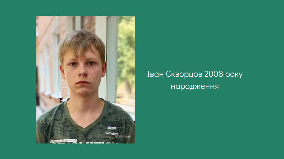 Відділення поліції № 3 міста Бобринець Кропивницького районного управління розшукує Скворцова Івана Борисовича, 2008 року народження, який 23 серпня 2024 року о 21:00 самовільно залишив школу-інтернат.
