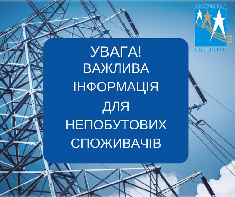 У зв'язку з 18:00 до 22:00 для непобутових споживачів Кіровоградської області вводяться графіки в обсязі 3-х черг, 12.3 МВт.