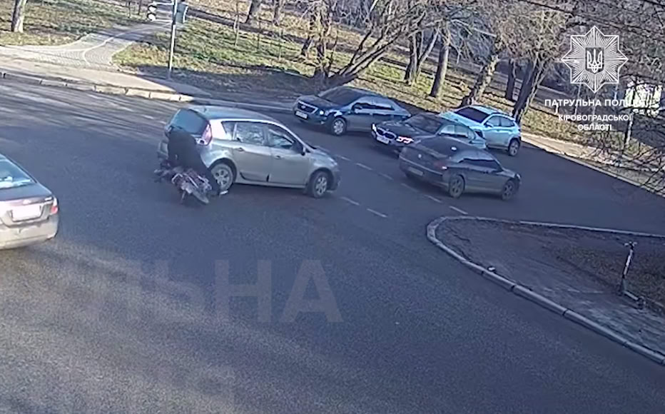 У Кропивницькому на перетині вулиць Вокзальна та Івана Олінського мало не зіткнулися автомобіль та мопед, легковик не пропустив мотоцикліста, через що той упав.