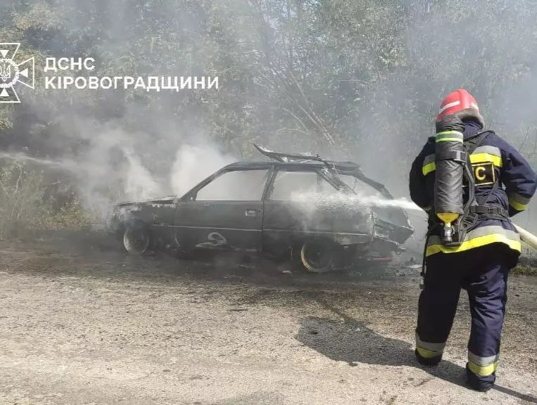 9 серпня поблизу селища Добровеличківка горів легковий автомобіль, на пожежі травмувався чоловік.