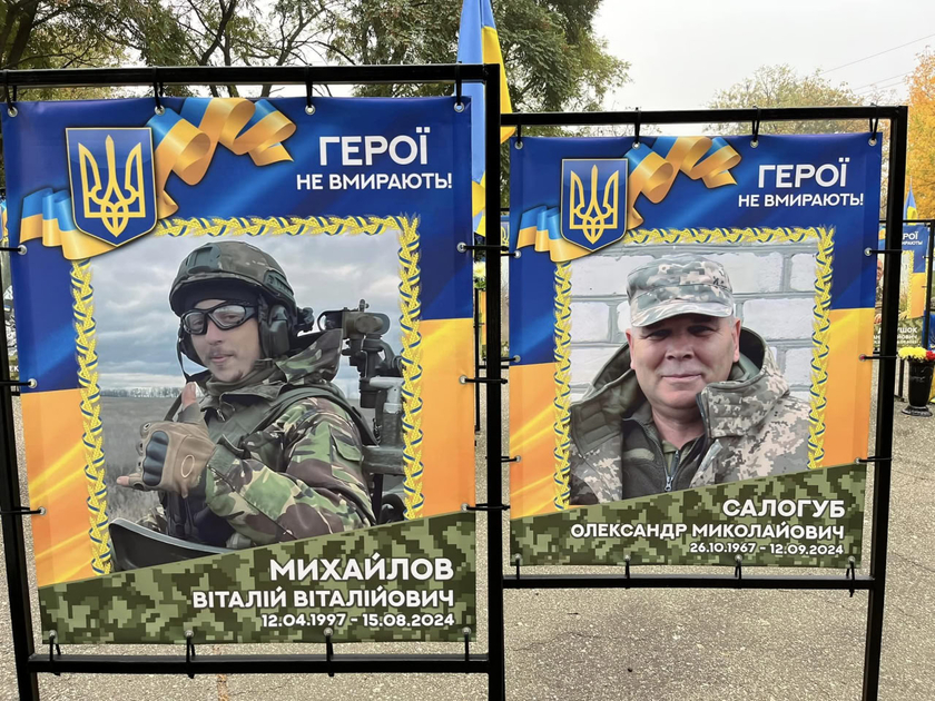 У Новгородківській громаді на Алеї слави встановили стенди, присвячені пам'яті солдата Віталія Михайлова та старшого сержанта Олександра Салогуба.