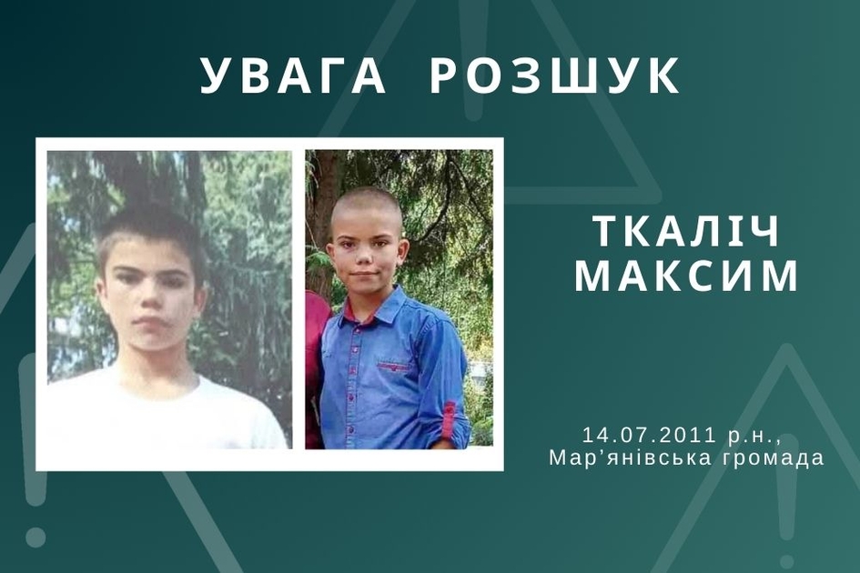 У Мар’янівській громаді розшукують зниклого 14-річного Максима Ткаліча, хлопець поїхав з дому 17 вересня та не повернувся.