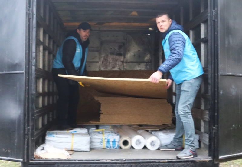 Благодійники ГО «Десяте квітня» доставили гуманітарний вантаж у вигляді будівельних матеріалів, зокрема ОСБ плити, плівку та цвяхи. Постраждалі матимуть змогу швидко провести першочергові ремонтні роботи.