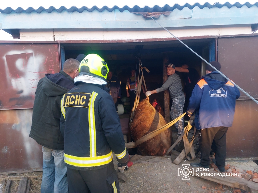 7 січня о 15:06 до Служби порятунку «101» надійшло повідомлення про те, що на вул. Шевченка села Шамраєве Благовіщенської громади Голованівського району потрібна допомога рятувальників, щоб дістати корову, яка впала в оглядову автомобільну яму у гаражі на території приватного домоволодіння.