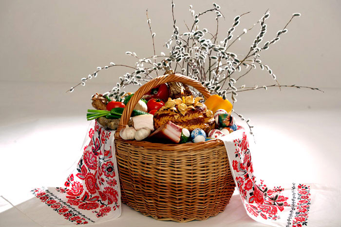 Для двох осіб кошик виглядатиме так: одна середня паска, п'ять яєць для крашанок, 250 г ковбаси, 200 г сала, 150 г твердого сиру, 100 г вершкового масла, а ще по 200 г редиски та огірків. Такий набір обійдеться приблизно у 398 гривень.