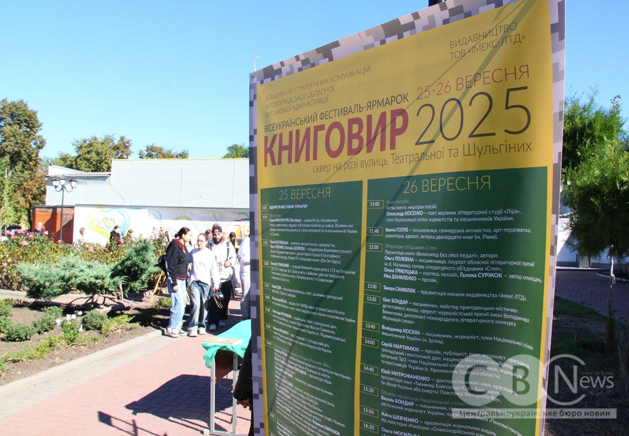 Ярмарок-виставка у Кропивницькому триватиме два дні. Проходить «Книговир-2025» у сквері, який знаходиться на перехресті вулиць Театральна та Шульгіних, біля пам’ятнику першому трамваю.