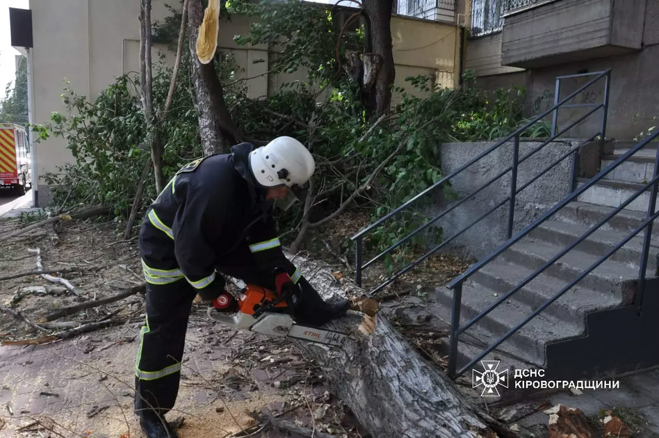 15 вересня рятувальники 1-го пожежно-рятувального загону Кропивницького та аварійно-рятувального загону спеціального призначення ГУ ДСНС в області допомагали комунальним службам прибирати аварійні дерева та гілки.