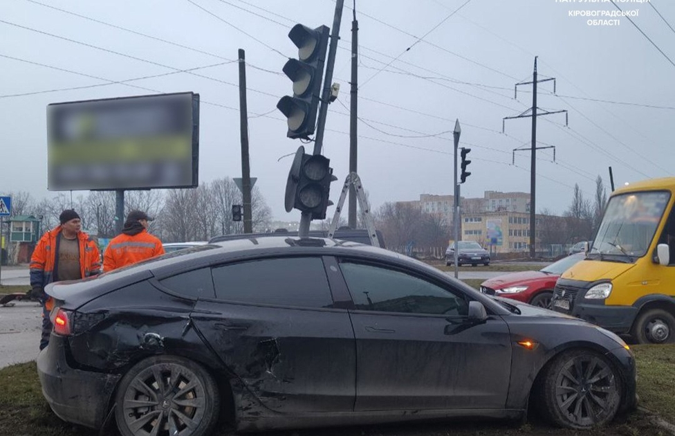 29 січня у Кропивницькому на перетині вулиць Юрія Коваленка та Незалежності сталася ДТП, внаслідок якої водій Tesla врізався у світлофор.